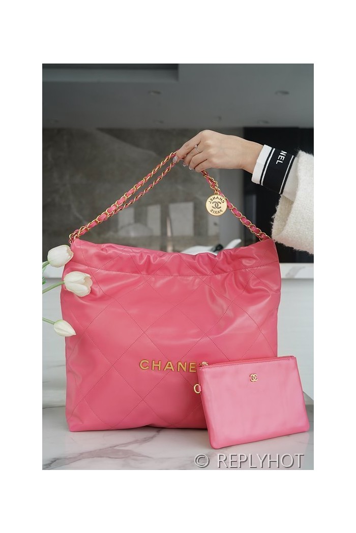 [하이엔드급] 샤넬 22 미디엄 핸드백 카프스킨 골드메탈 핑크 [매장가 1000만원대]