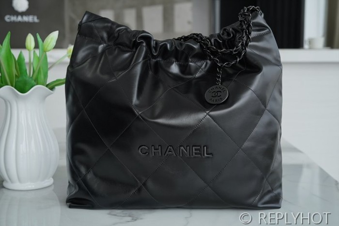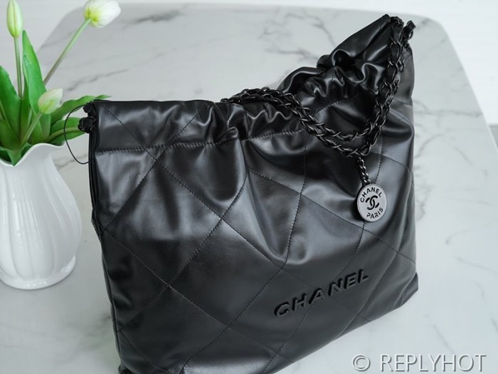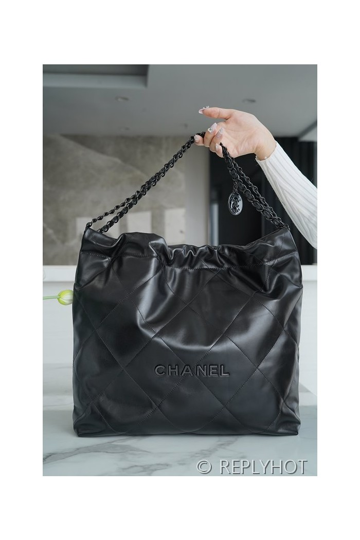 [하이엔드급] 샤넬 22 미디엄 핸드백 카프스킨 블랙메탈 블랙 [매장가 1000만원대]