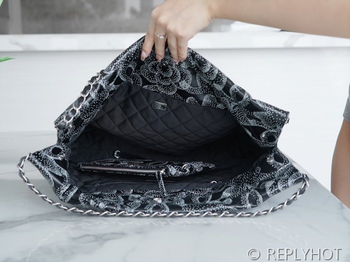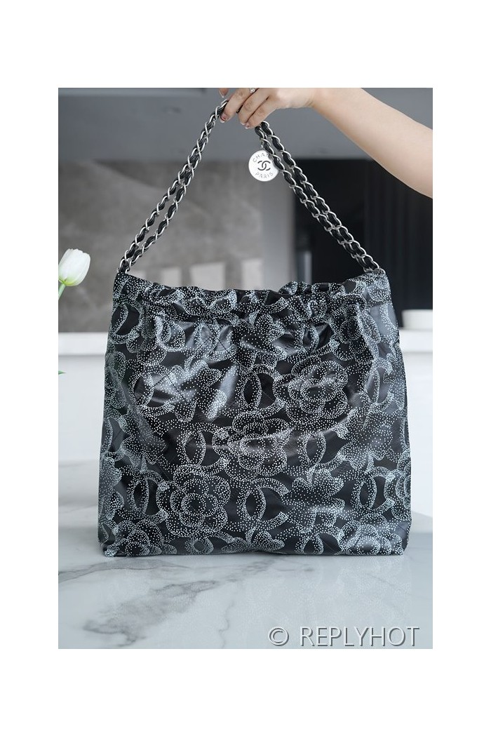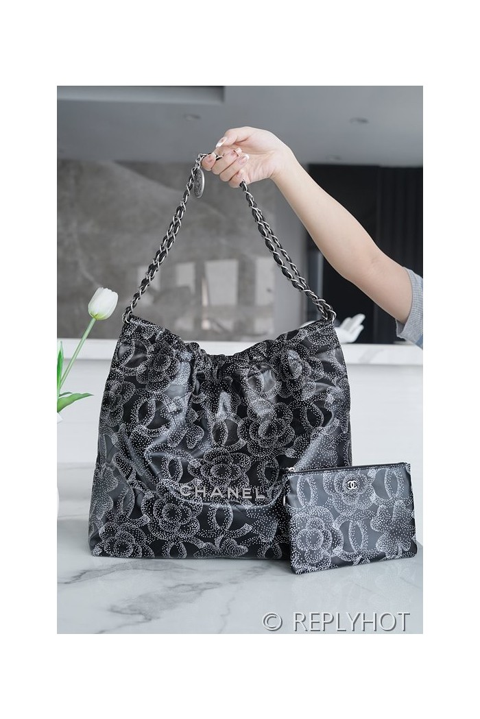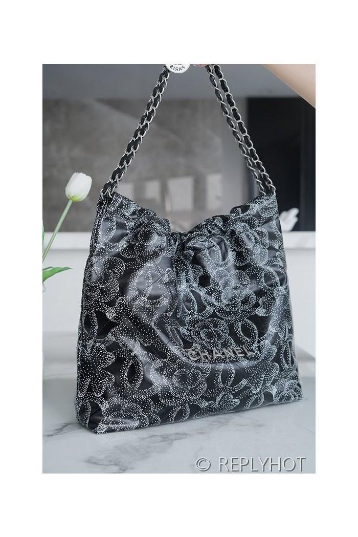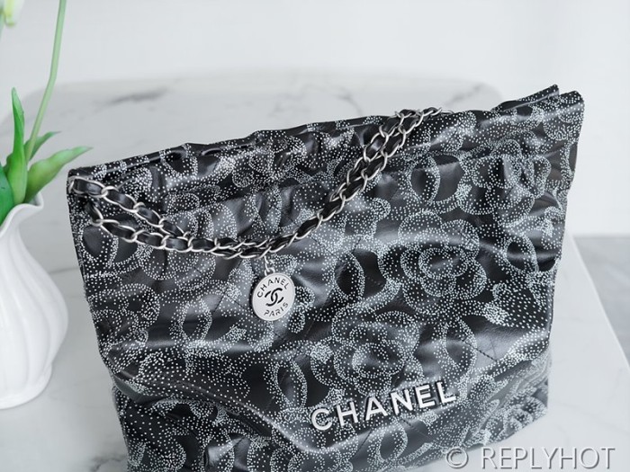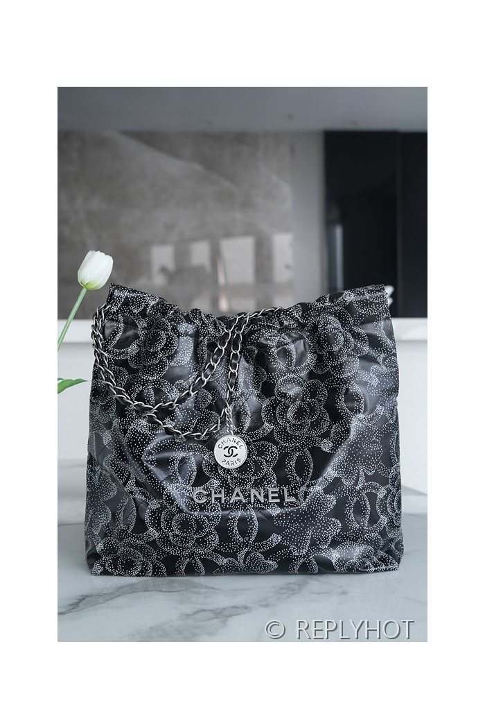 [하이엔드급] 샤넬 22 미디엄 핸드백 프린티드 카프스킨 실버메탈 블랙&화이트 [매장가 1000만원대]