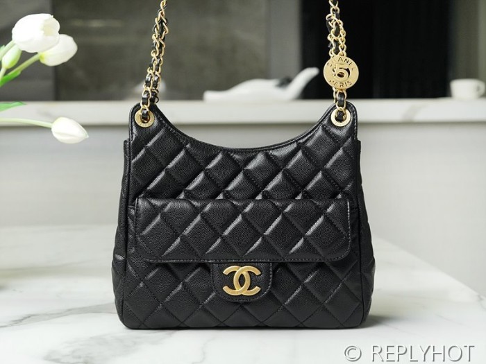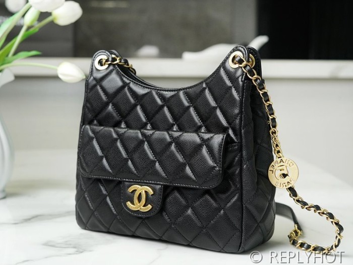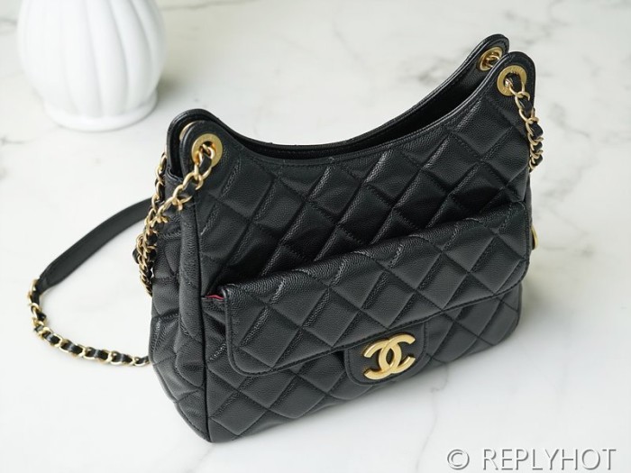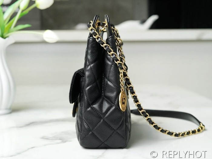 [하이엔드급] 샤넬 23 포켓 체인 미듐 호보백 카프스킨 골드메탈 블랙 [매장가 1500만원대]
