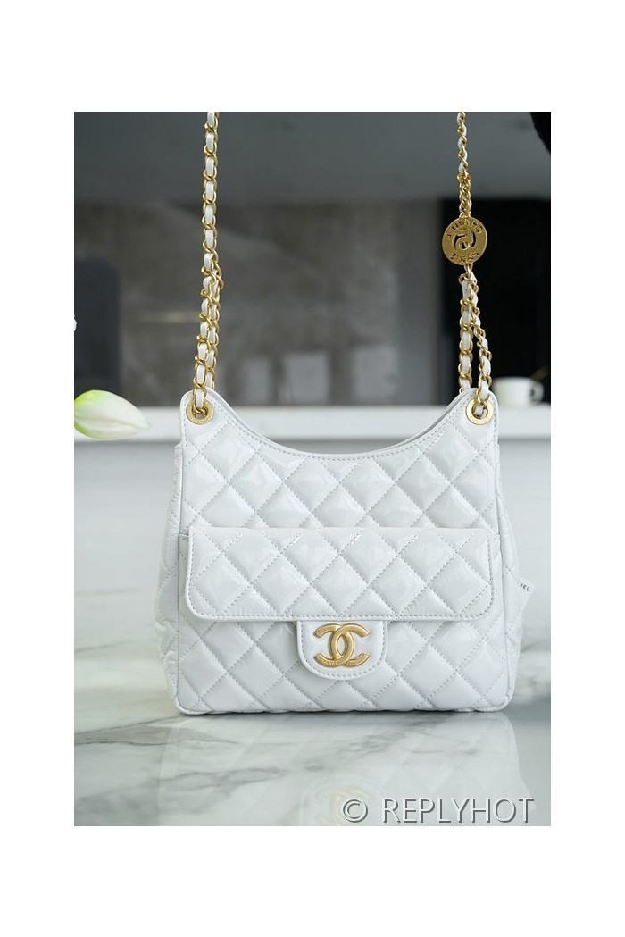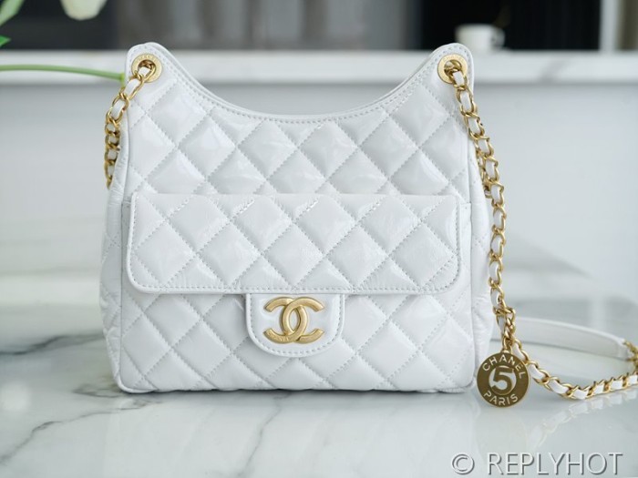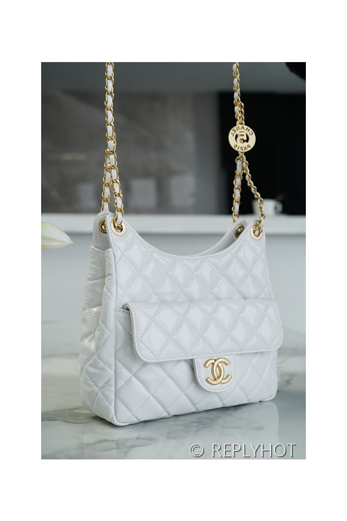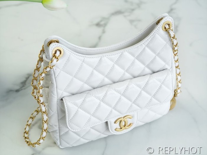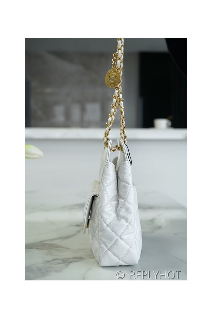 [하이엔드급] 샤넬 23 포켓 체인 미듐 호보백 페이던트 골드메탈 화이트 [매장가 1500만원대]