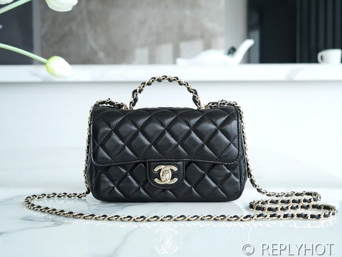 [하이엔드급] 샤넬 23 체인 크리스탈 탑핸들 뉴미니백 램스킨 골드메탈 블랙 [매장가 1000만원대] > CHANEL