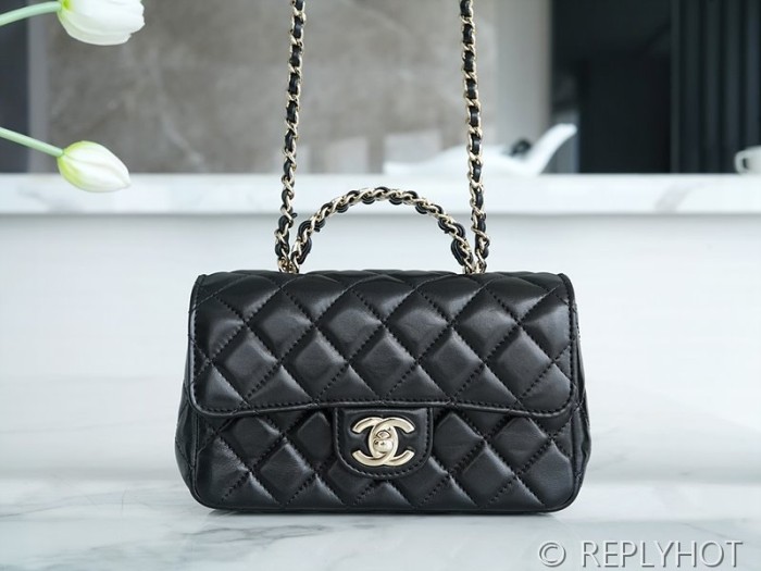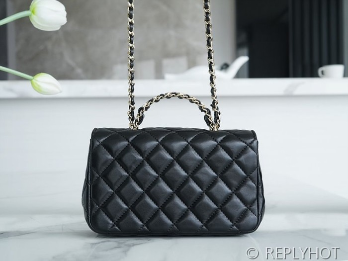 [하이엔드급] 샤넬 23 체인 크리스탈 탑핸들 뉴미니백 램스킨 골드메탈 블랙 [매장가 1000만원대]