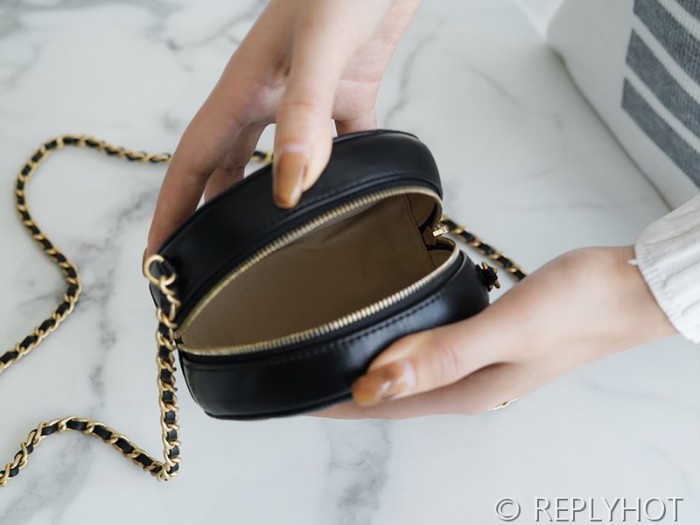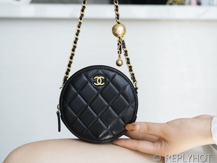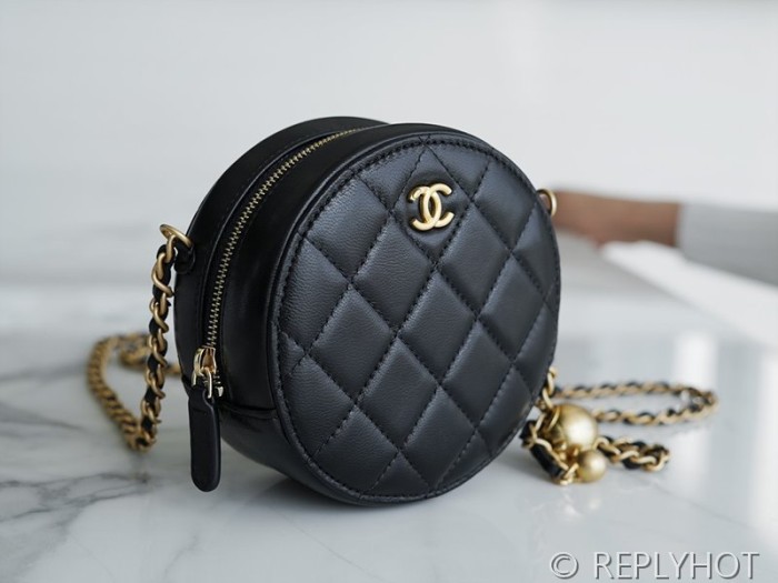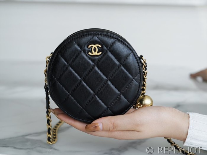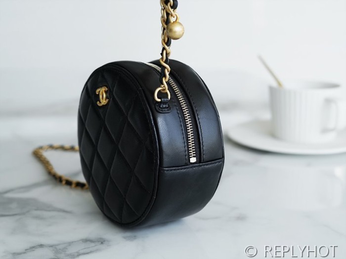 [하이엔드급] 샤넬 골드볼 원형 체인달린 미니백 램스킨 골드메탈 블랙 [매장가 600만원대]