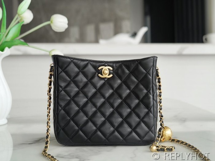 [하이엔드급] 샤넬 골드볼 체인조절 호보백 램스킨 골드메탈 블랙 [매장가 700만원대]