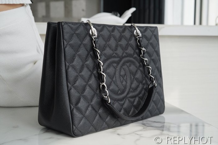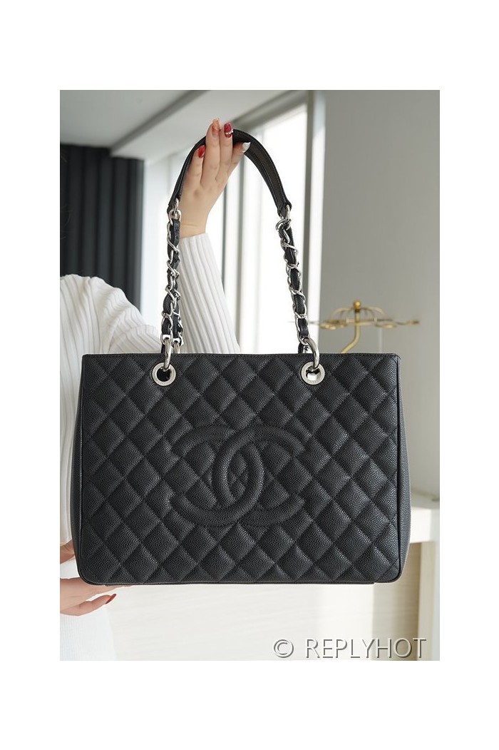 • [하이엔드급] 샤넬 그랜드 쇼핑 토트백 카프스킨 실버메탈 블랙 [매장가 900만원대]