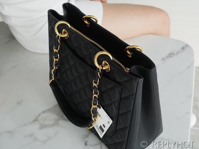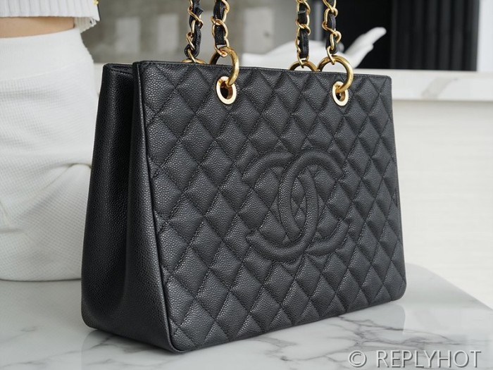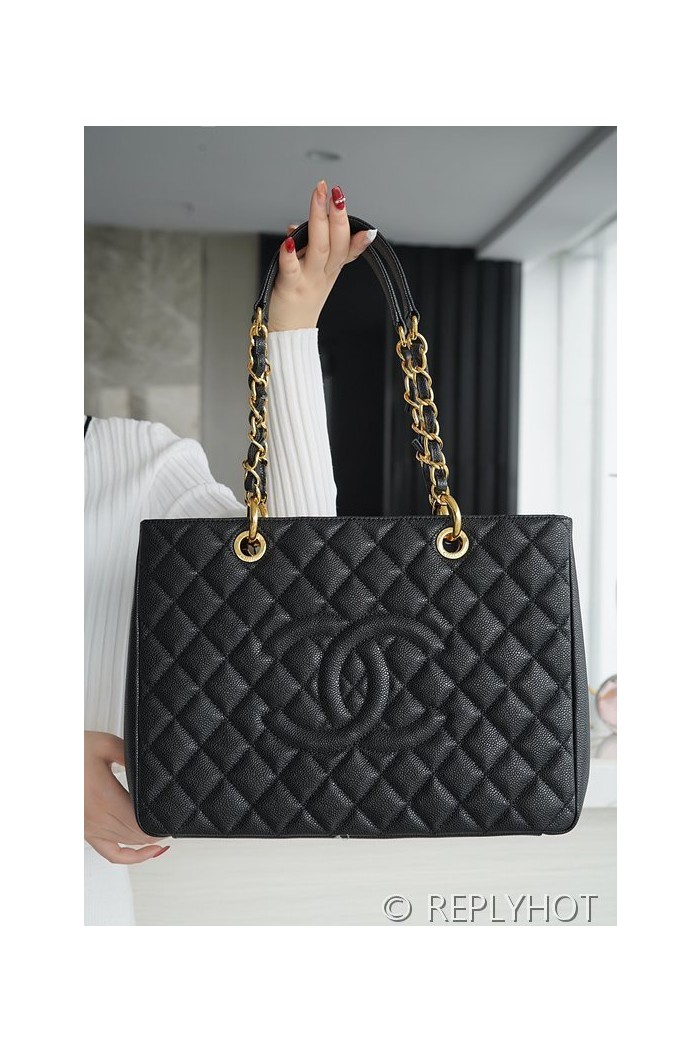 • [하이엔드급] 샤넬 그랜드 쇼핑 토트백 카프스킨 골드메탈 블랙 [매장가 900만원대]