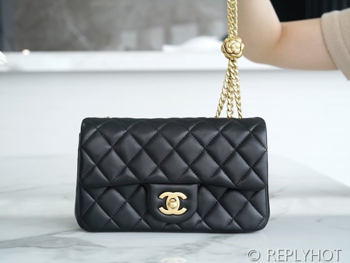 [하이엔드급] 샤넬 까멜리아 골드볼 뉴미니 램스킨 골드메탈 블랙 [매장가 750만원대] > CHANEL