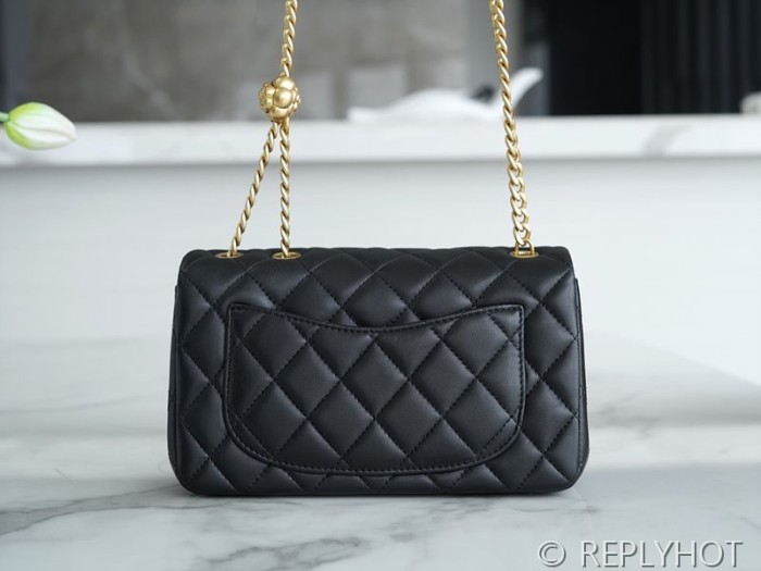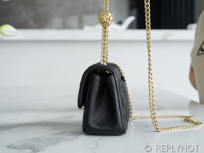 [하이엔드급] 샤넬 까멜리아 골드볼 뉴미니 램스킨 골드메탈 블랙 [매장가 750만원대]