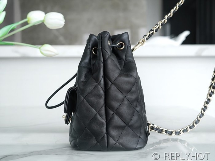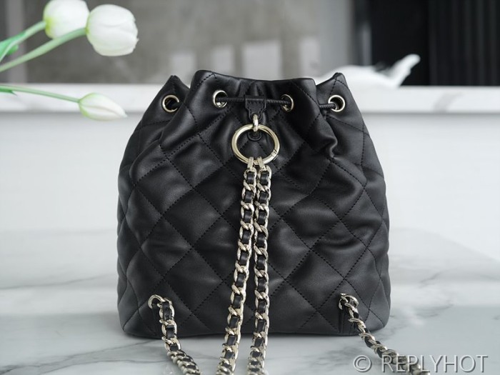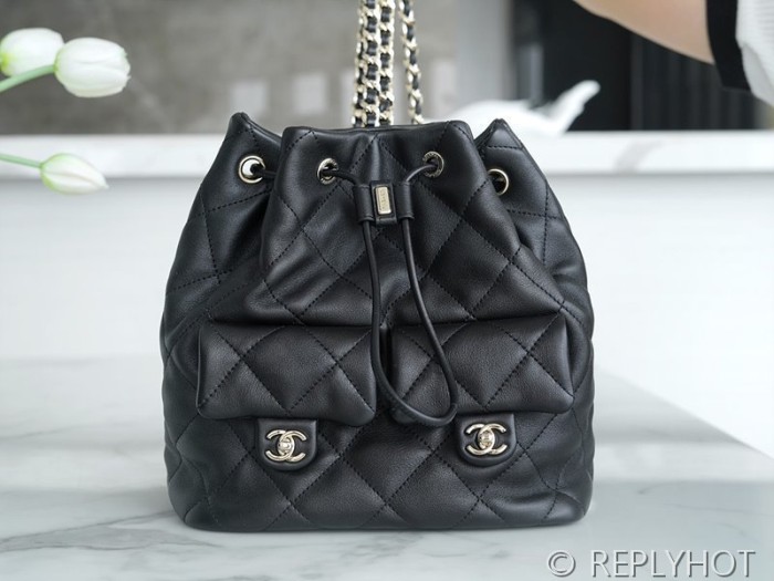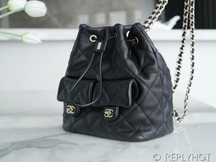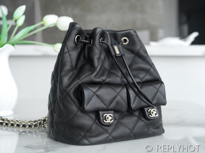 • [하이엔드급] 샤넬 드로우스트링 버킷 백팩 램스킨 실버메탈 블랙 [매장가 1000만원대]