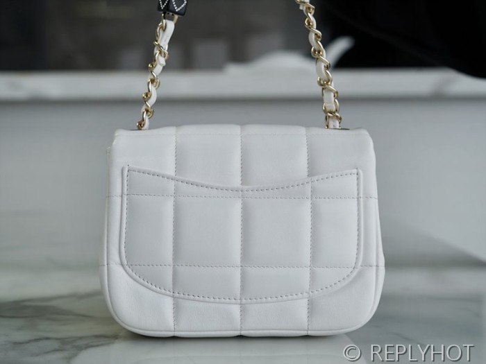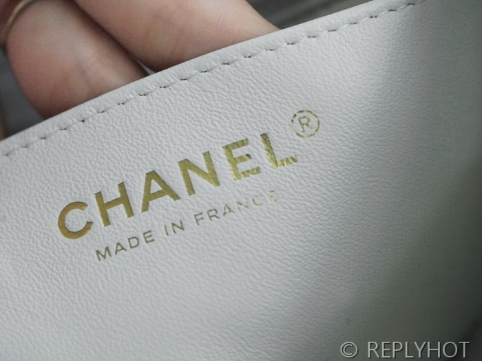 [하이엔드급] 샤넬 로고 레진 참 미니 플랩백 램스킨 골드메탈 화이트 [매장가 650만원대]