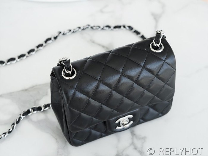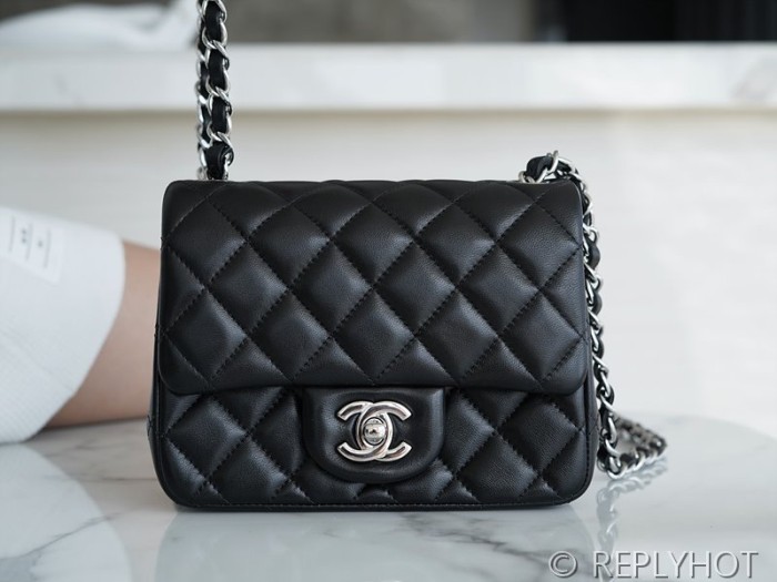 [하이엔드급] 샤넬 쁘띠삭 미니 플랩백 램스킨 실버메탈 블랙 [매장가 673만원대] > CHANEL
