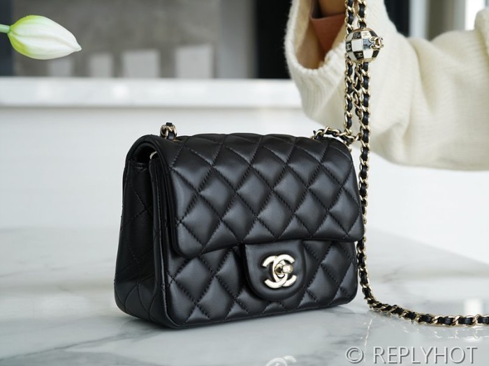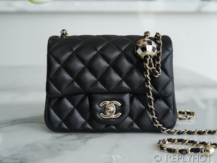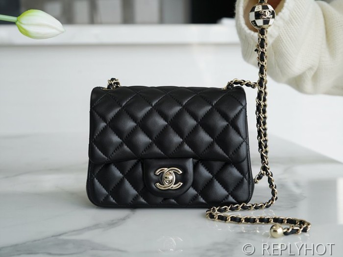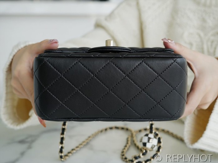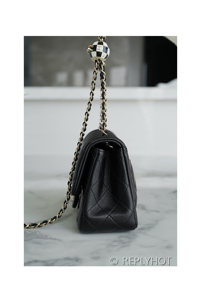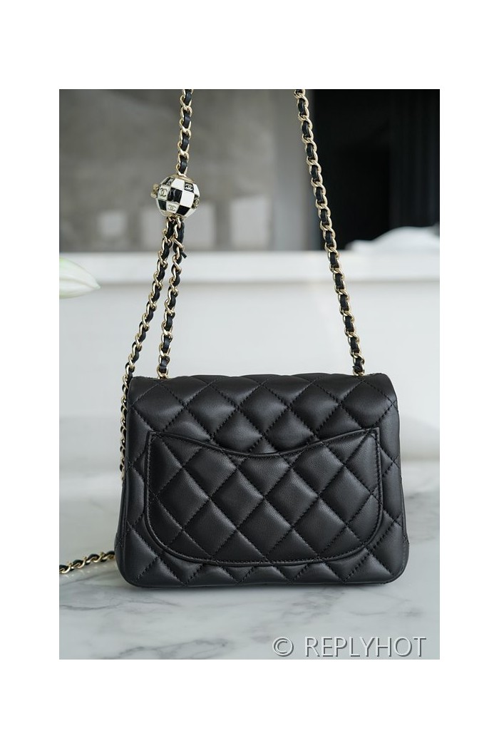 • [하이엔드급] 샤넬 쁘띠삭 체크사커볼 미니백 램스킨 골드메탈 블랙 [매장가 900만원대]
