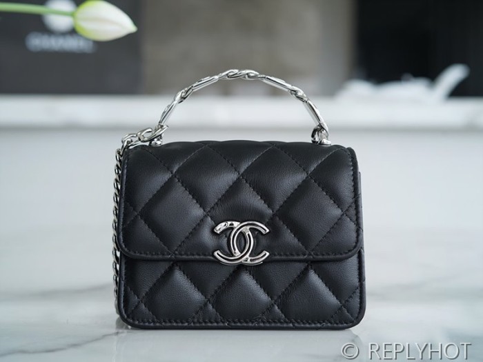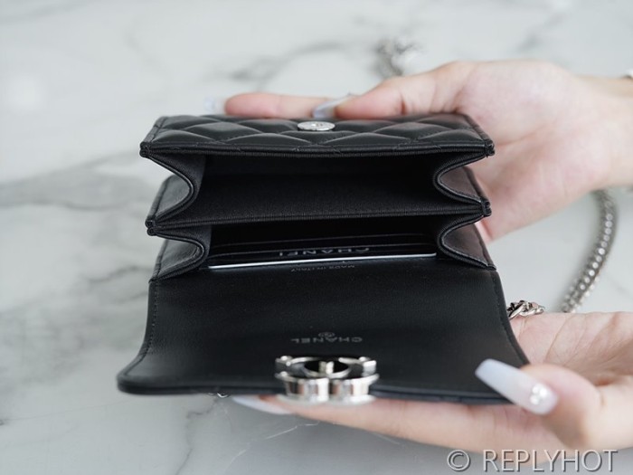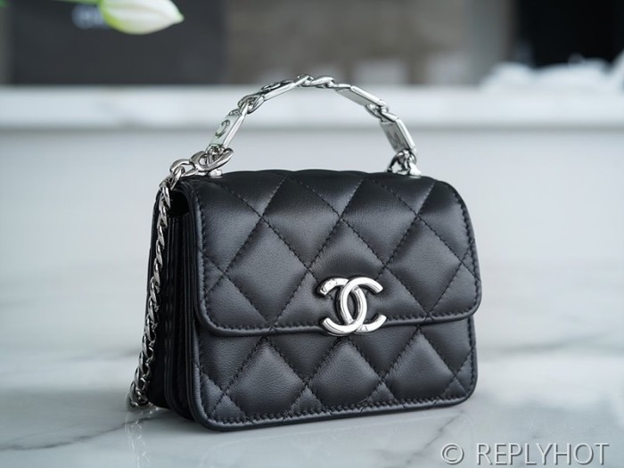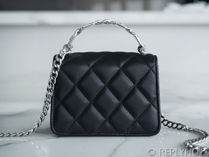• [하이엔드급] 샤넬 코코로고 체인 달린 미니백 카프스킨 실버메탈 블랙 [매장가 550만원대]
