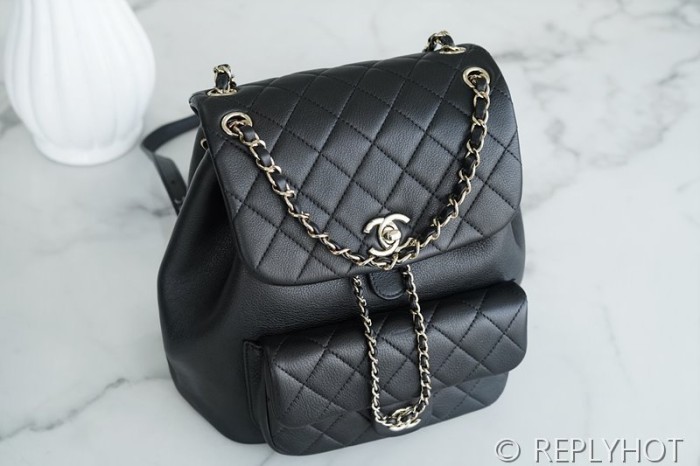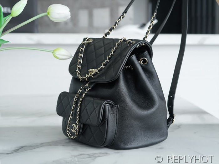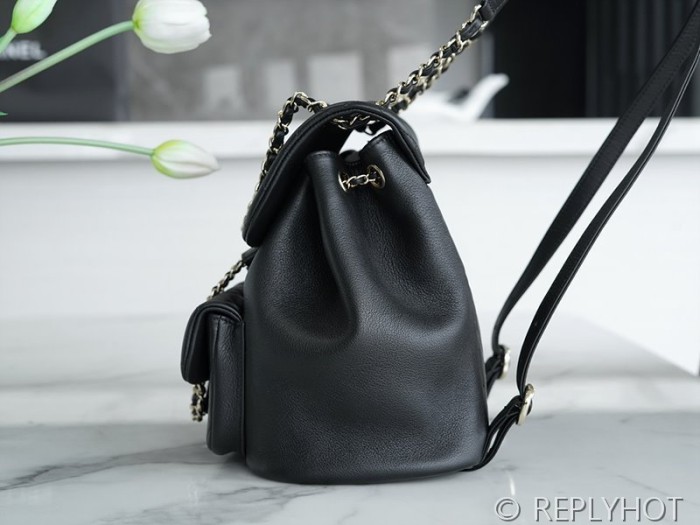[하이엔드급] 샤넬 23 크루즈 듀마 백팩 카프스킨 골드메탈 블랙 [매장가 1000만원대] > CHANEL