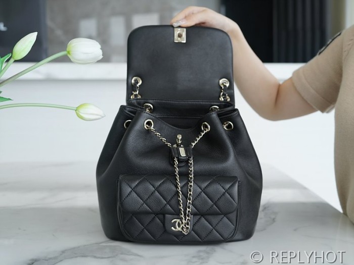[하이엔드급] 샤넬 23 크루즈 듀마 백팩 카프스킨 골드메탈 블랙 [매장가 1000만원대]