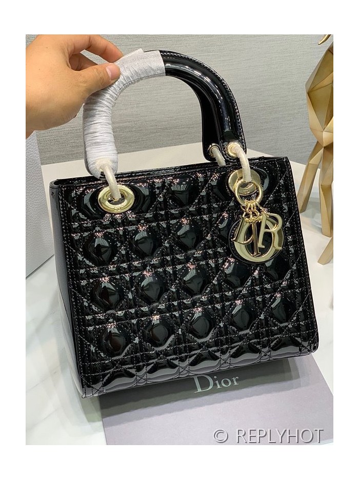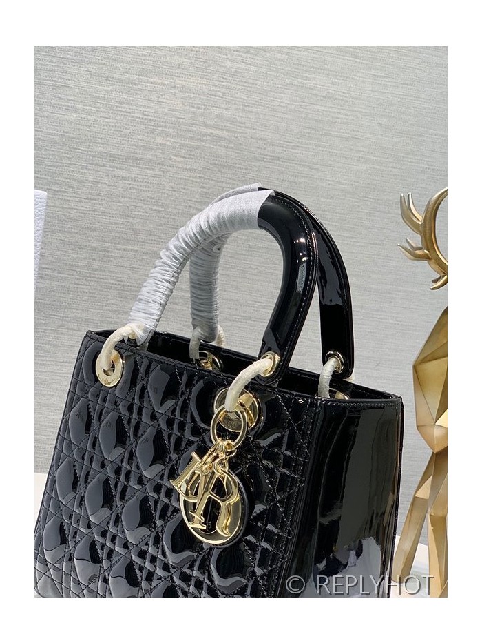 디올 Lady Dior 미디움 백 / 블랙 페이턴트 [매장가900만원대]