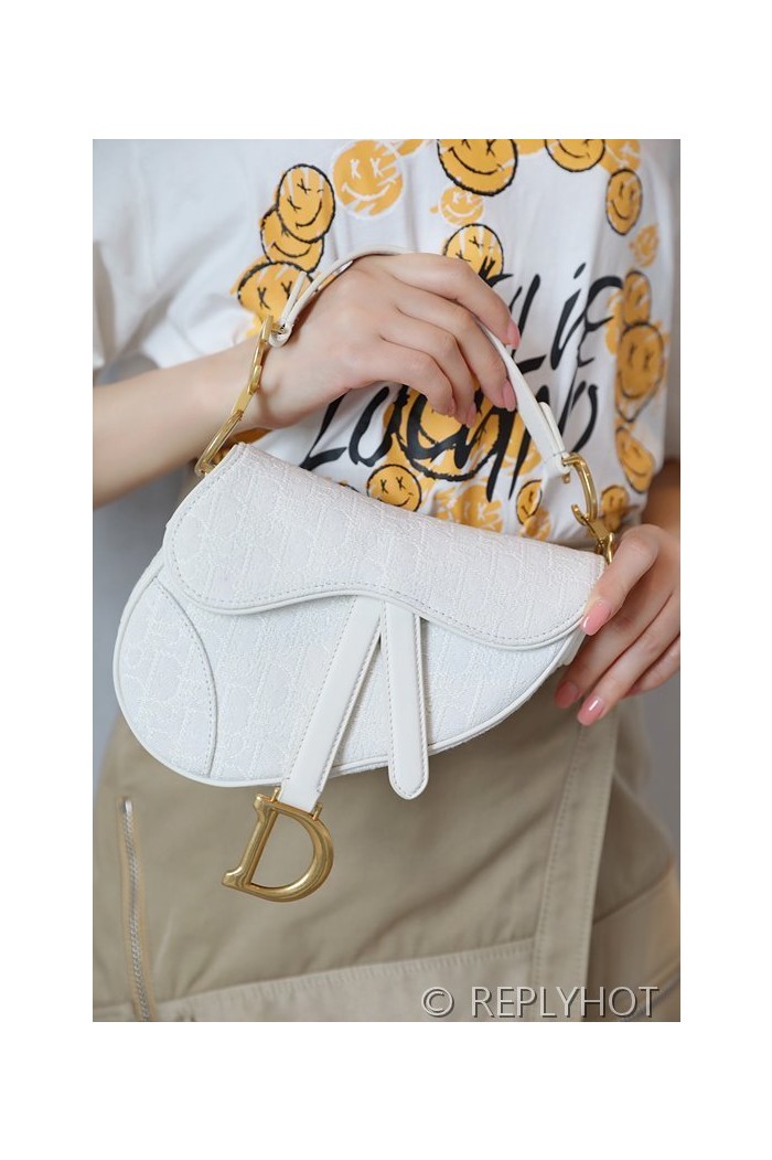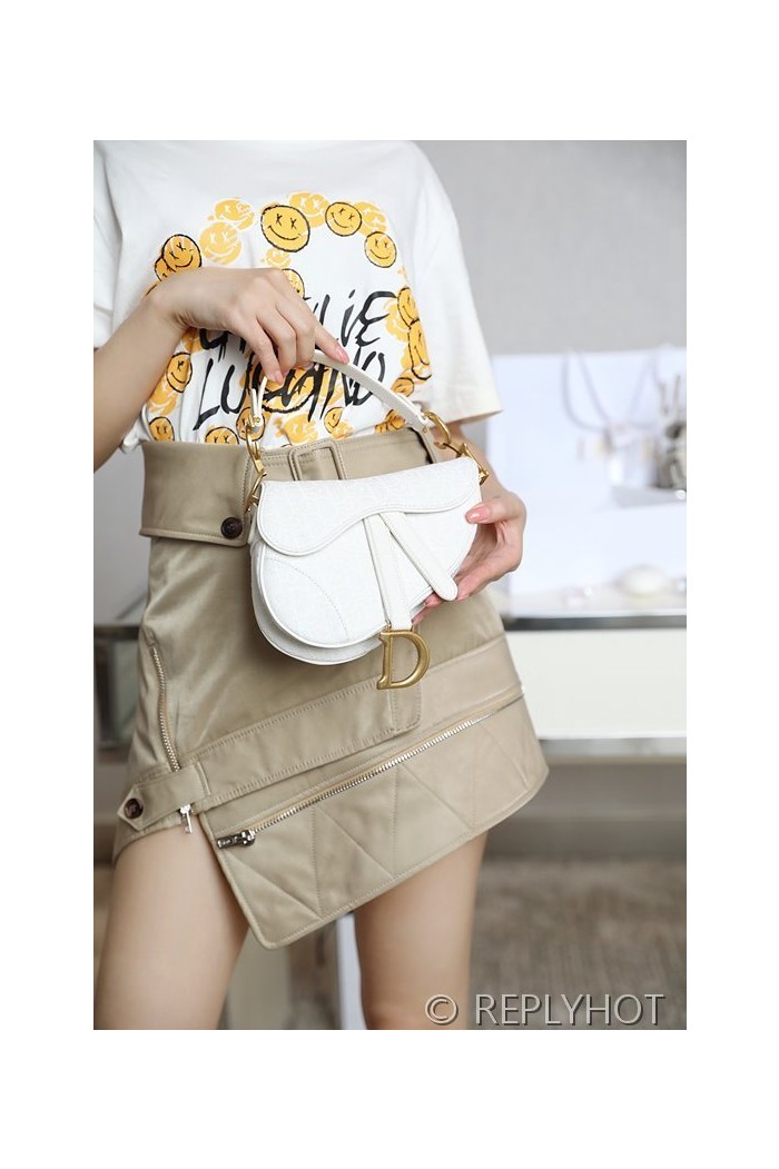 디올 SADDLE 스트랩 백 미니 / 오블리크 화이트 [520만원대]