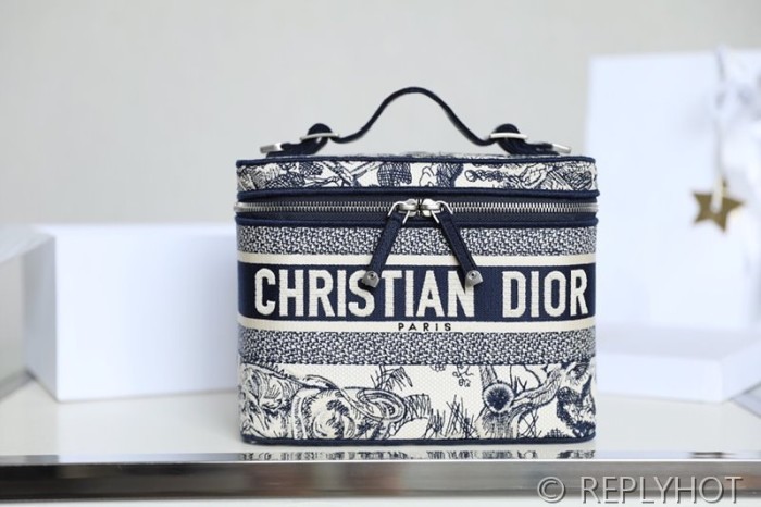 디올 트래블 베니티 케이스 / 블루 Jouy [매장가285만원대]