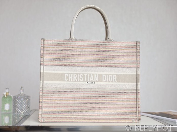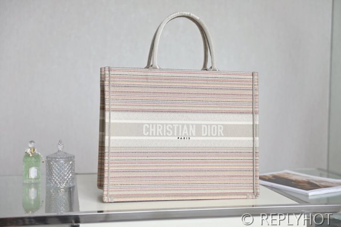 디올 북 토트 백 / 라지 / 멀티 컬러 스트라이프 [매장가490만원대]