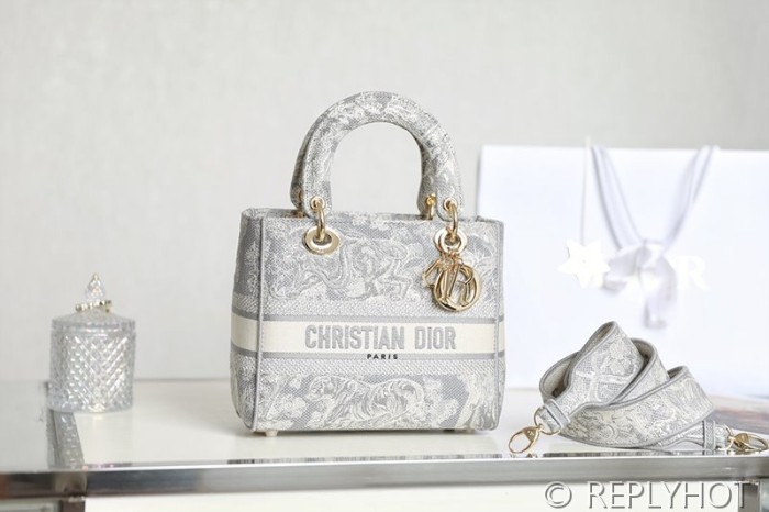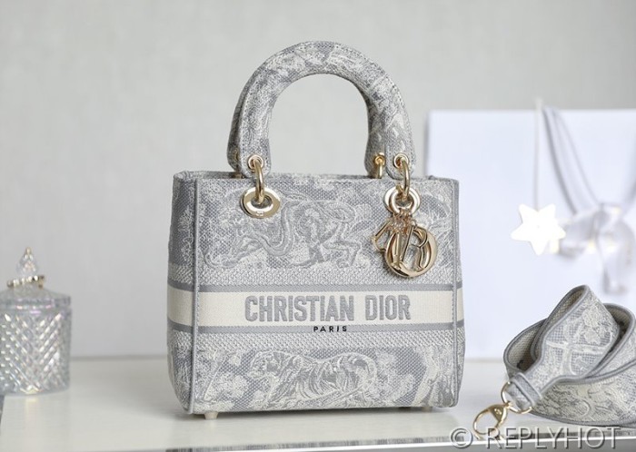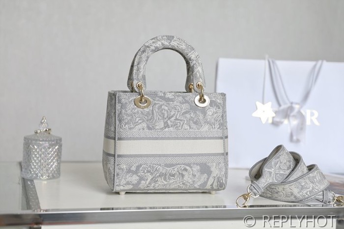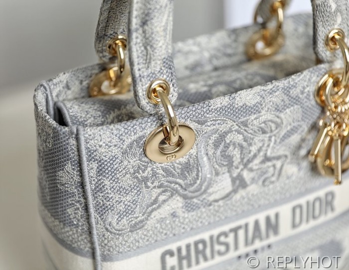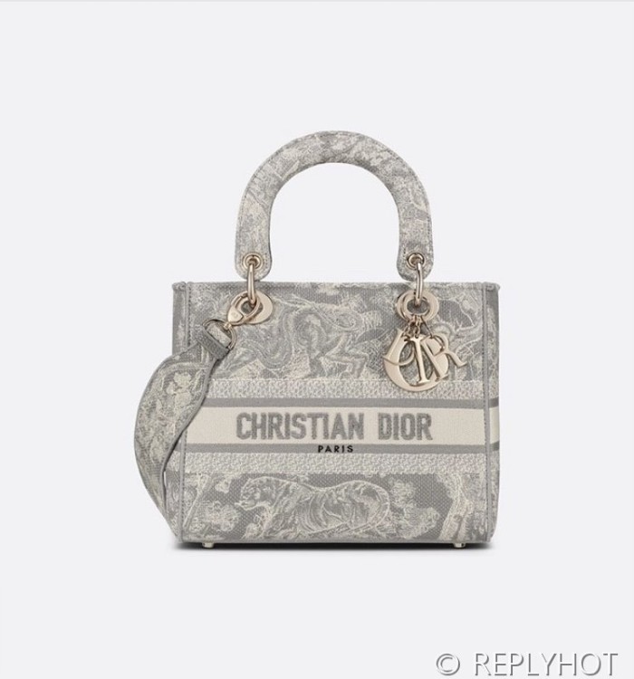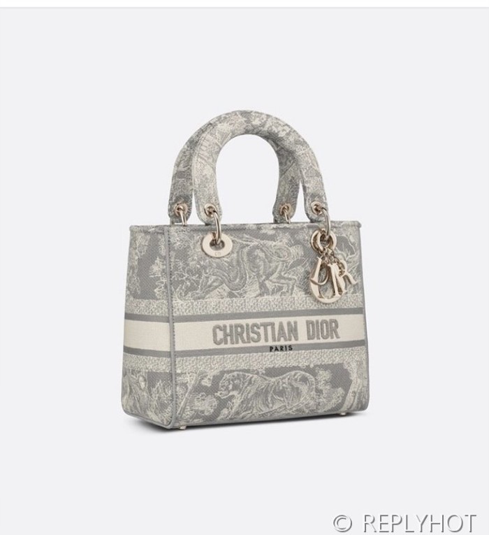 디올 Lady D-LITE 자수 미디엄백 타이거 그레이 [매장가 740만원대]