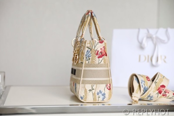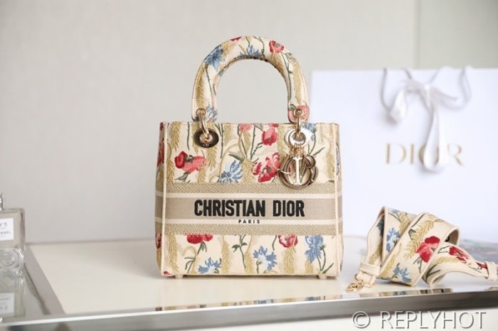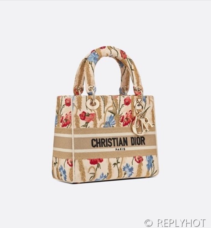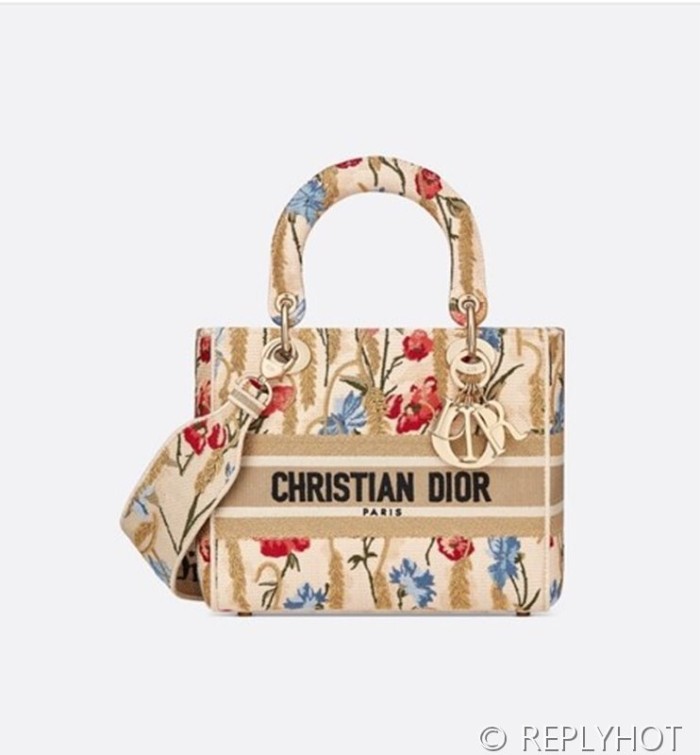 디올 Lady D-LITE 자수 미디엄백 캔버스 베이지 [매장가 740만원대]