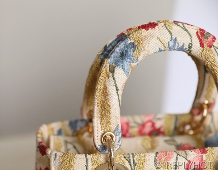디올 Lady D-LITE 자수 미디엄백 캔버스 베이지 [매장가 740만원대] > 디올