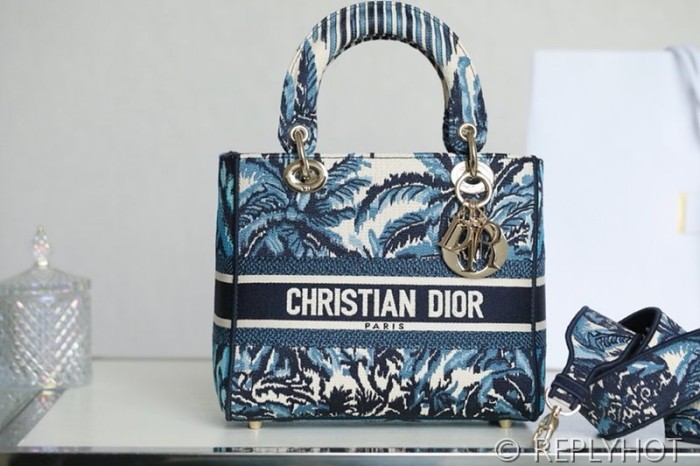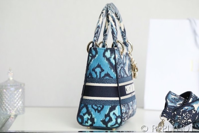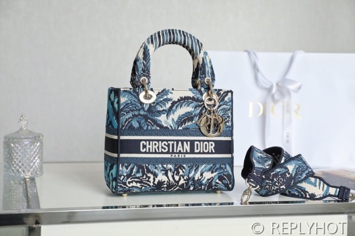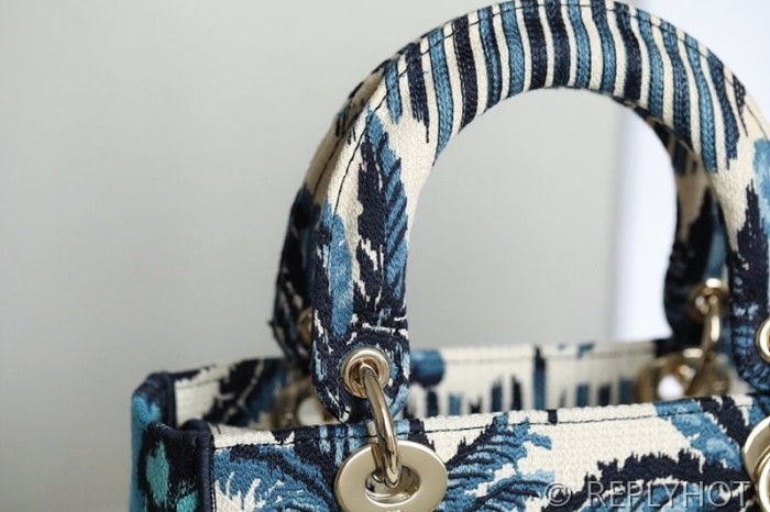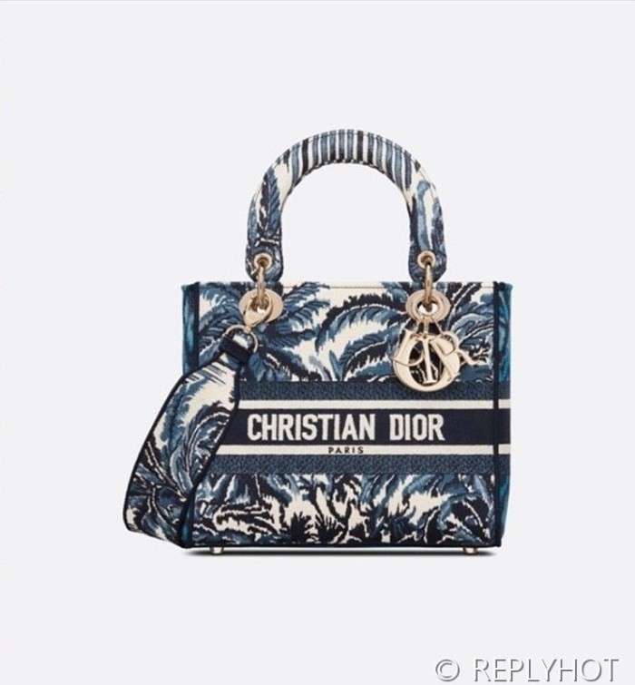 디올 Lady D-LITE 자수 미디엄백 블루코코넛 [매장가 740만원대]