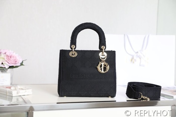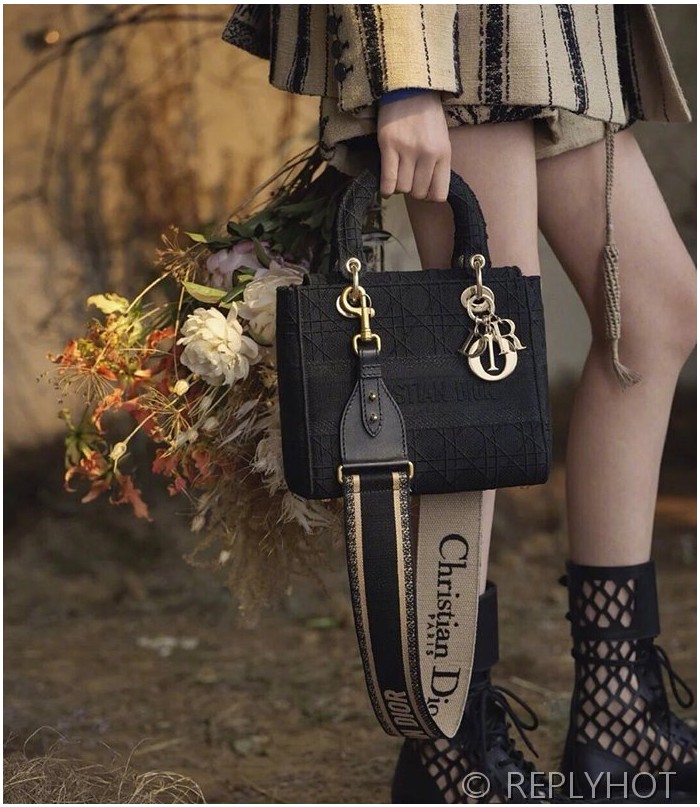 디올 Lady D-LITE 자수 미디엄백 블랙 [매장가 740만원대]