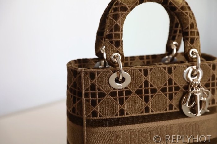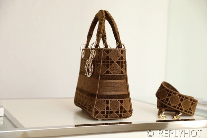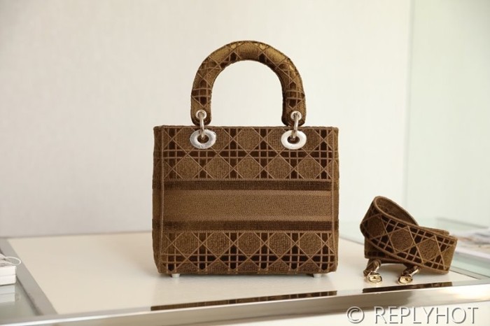 디올 Lady D-LITE 자수 미디엄백 브라운 [매장가 740만원대]
