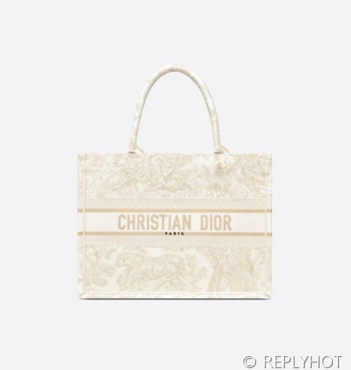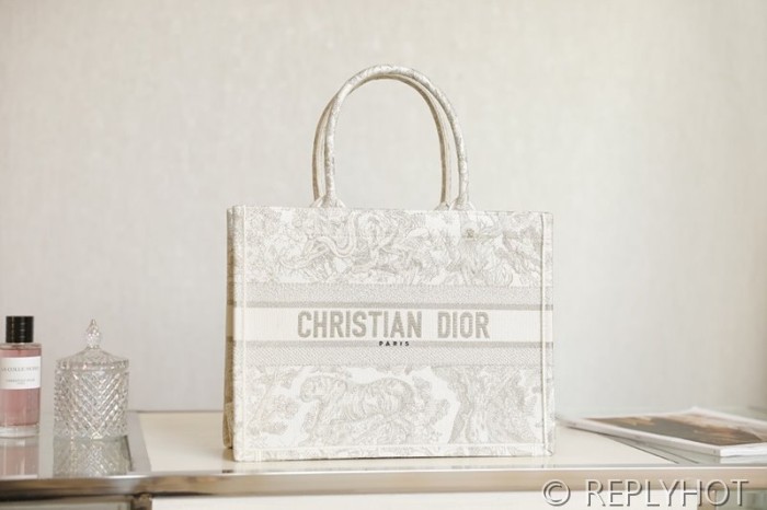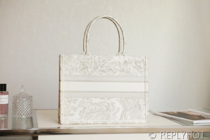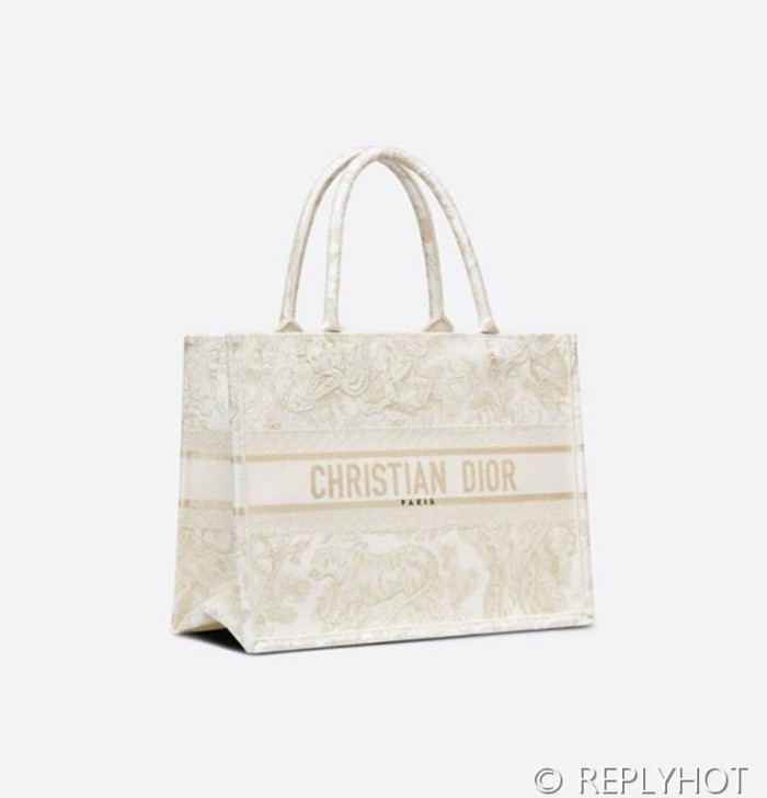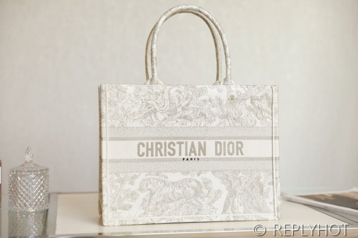 디올 북 토트 백 / 미디움 / 메탈라인 타이거 화이트 [매장가475만원대]