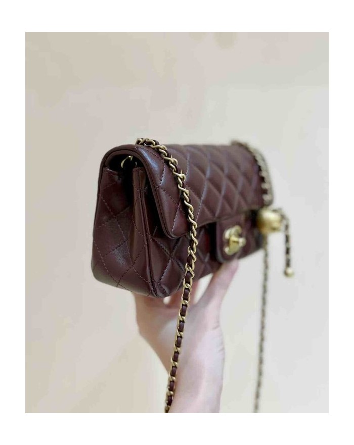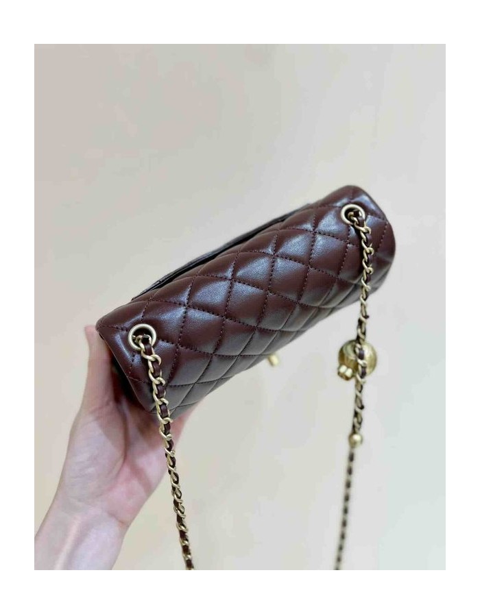 Chanel 24K Mini Ball Bag Brown Red Lambskin GHW 20cm > Classic Flap Mini 20cm