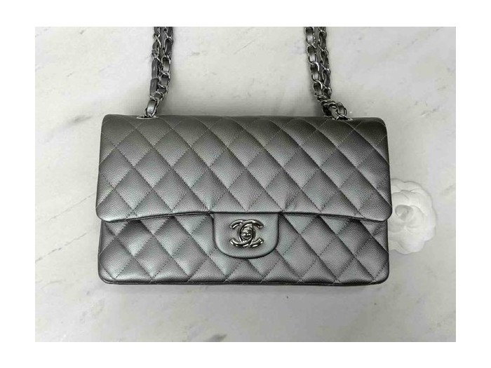 Chanel Classic Flap 25cm – Seasonal Limited Edition / Metallic Silver > Classic Flap Medium 25cm