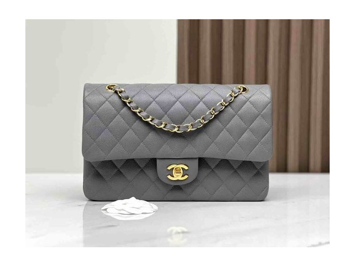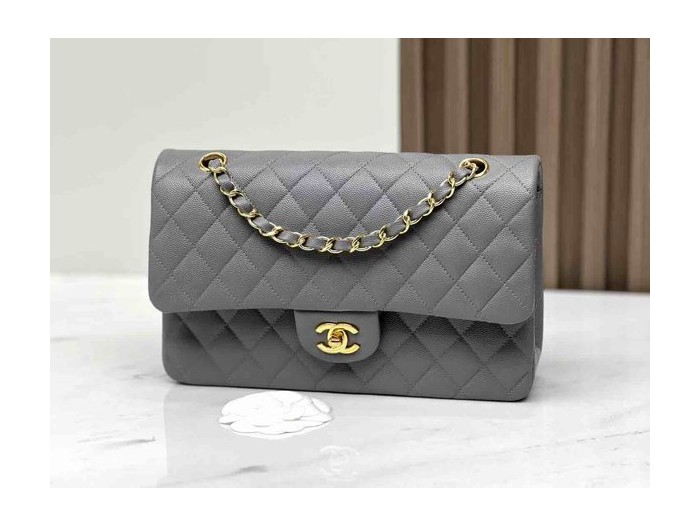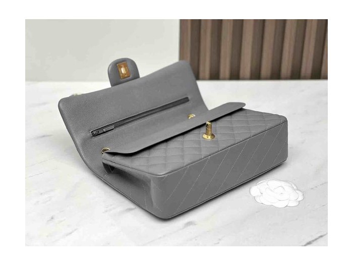 Chanel Classic Flap 22B Grey Caviar GHW 25cm > Classic Flap Medium 25cm