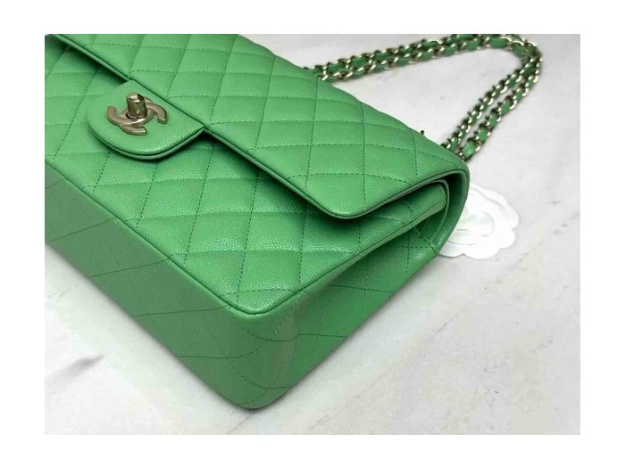 Chanel Classic Flap Grass Green Caviar GHW 25cm