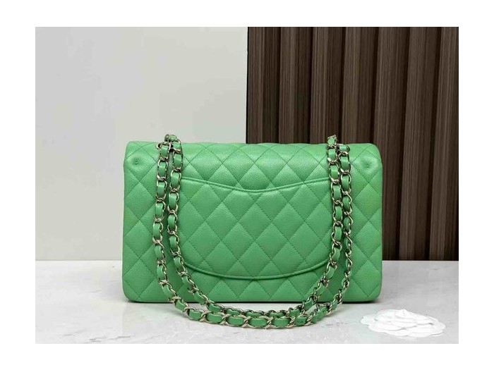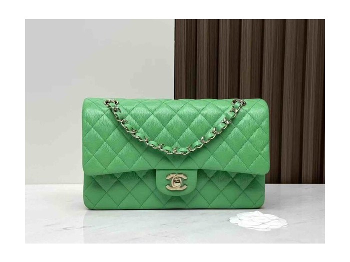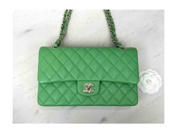• Chanel Classic Flap Grass Green Caviar GHW 25cm