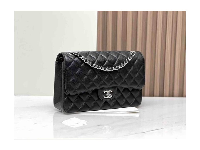 • Chanel Classic Flap Jumbo Black SHW 30cm