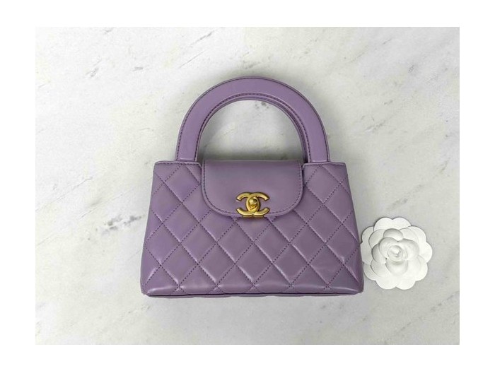 Chanel 24P Kelly Nano Stella Purple Waxed Leather 19cm > Classic Handle (Coco Handle) Mini