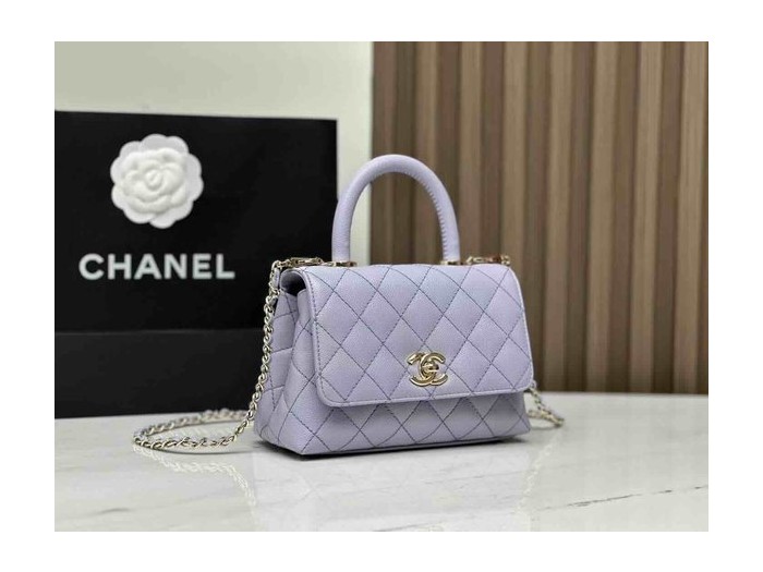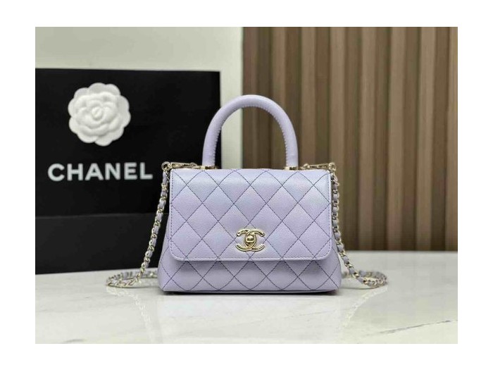 Chanel 22P Coco Handle Mini Taro Purple Caviar GHW 19cm