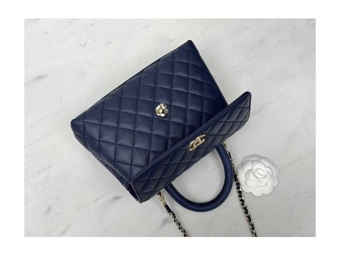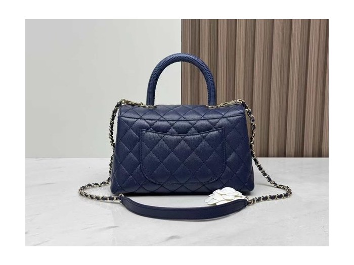 Chanel Coco Handle Small 24cm Lizard Top Handle Deep Blue