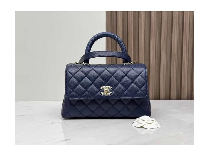 Chanel Coco Handle Small 24cm Lizard Top Handle Deep Blue > Classic Handle (Coco Handle) Small
