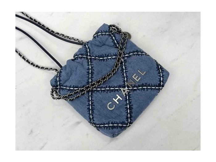 • Chanel 24P Mini Chanel 22 Washed Denim Blue