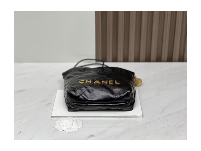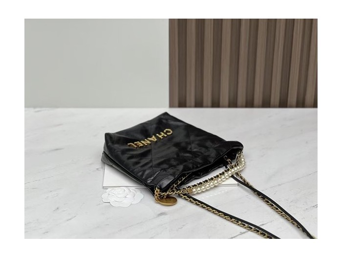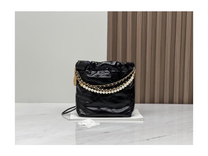 CHANEL 23S Mini 22 Bag – Pearl Black with Gold Hardware (20x19x6cm)
