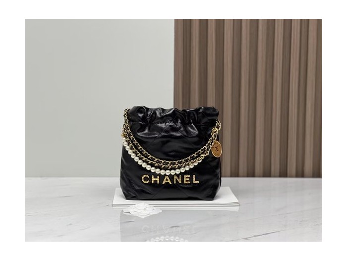 • CHANEL 23S Mini 22 Bag – Pearl Black with Gold Hardware (20x19x6cm)