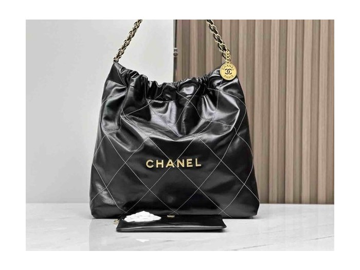 • Chanel 23C Chanel 22 Shopping Tote Black White Stitch