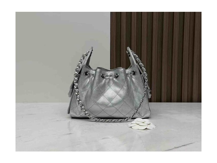 • Chanel 26C Mini 25 Hobo Bag – Silver Size: 20 × 22 × 12.5 cm