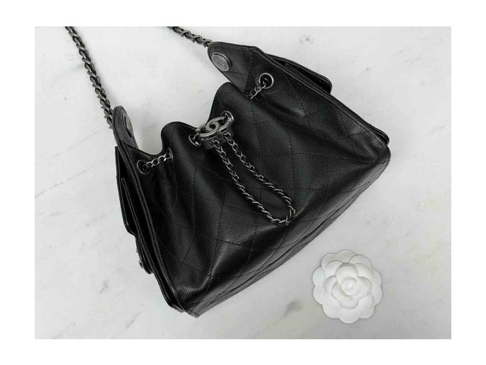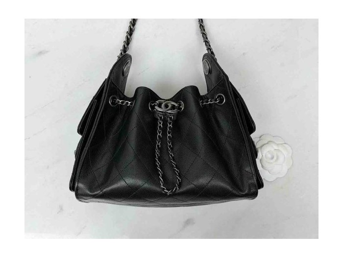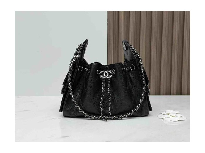 Chanel 26C Mini 25 Hobo Bag × Silver Hardware – Black 20 × 22 × 12.5 cm