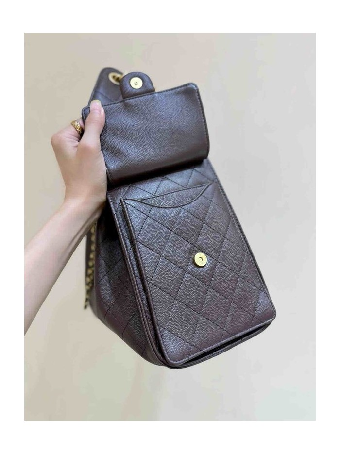 • Chanel 25S 25 Bag Dark Brown Grained Calfskin Large 40cm