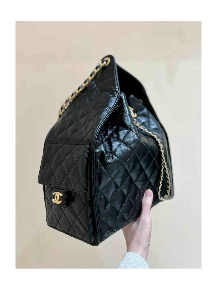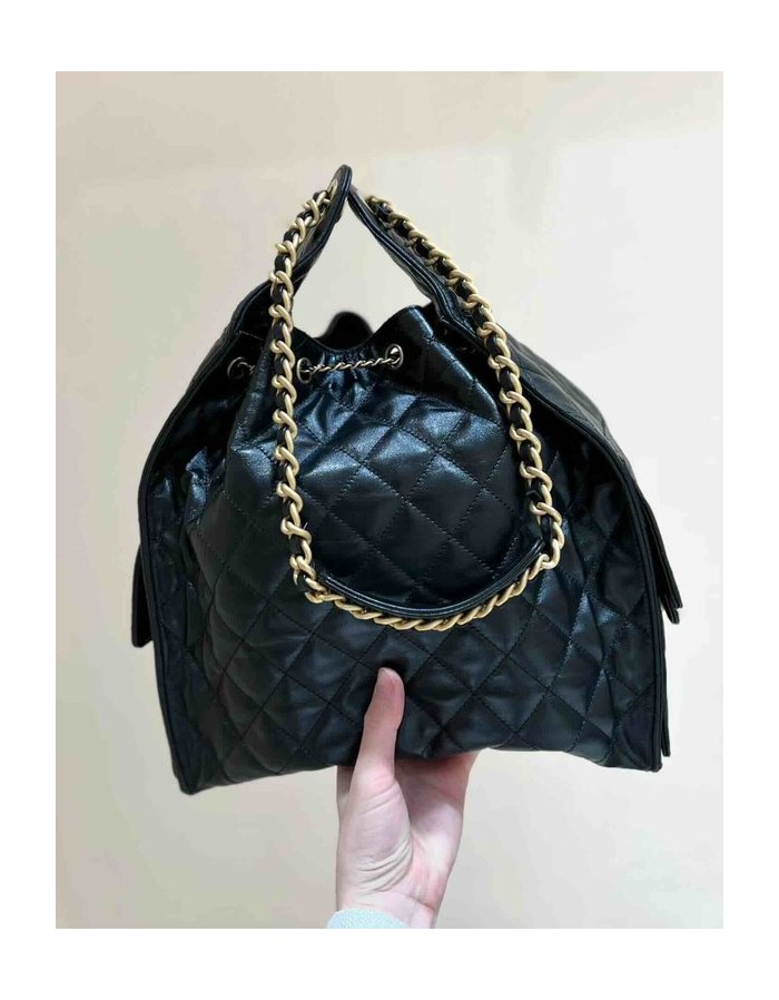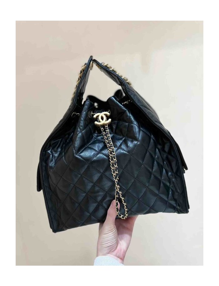 Chanel 25C Hobo Underarm Bag Black Onda Verde Waxed Calfskin GHW Large 40cm > Chanel 25 Large