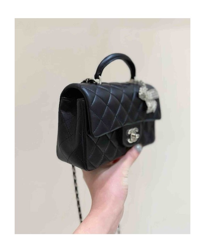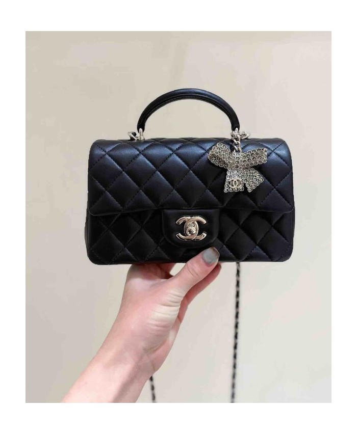 Chanel 25K CF Mini Handle Crystal Bow Lambskin GHW 20cm > Mini Bag Top Handle Mini
